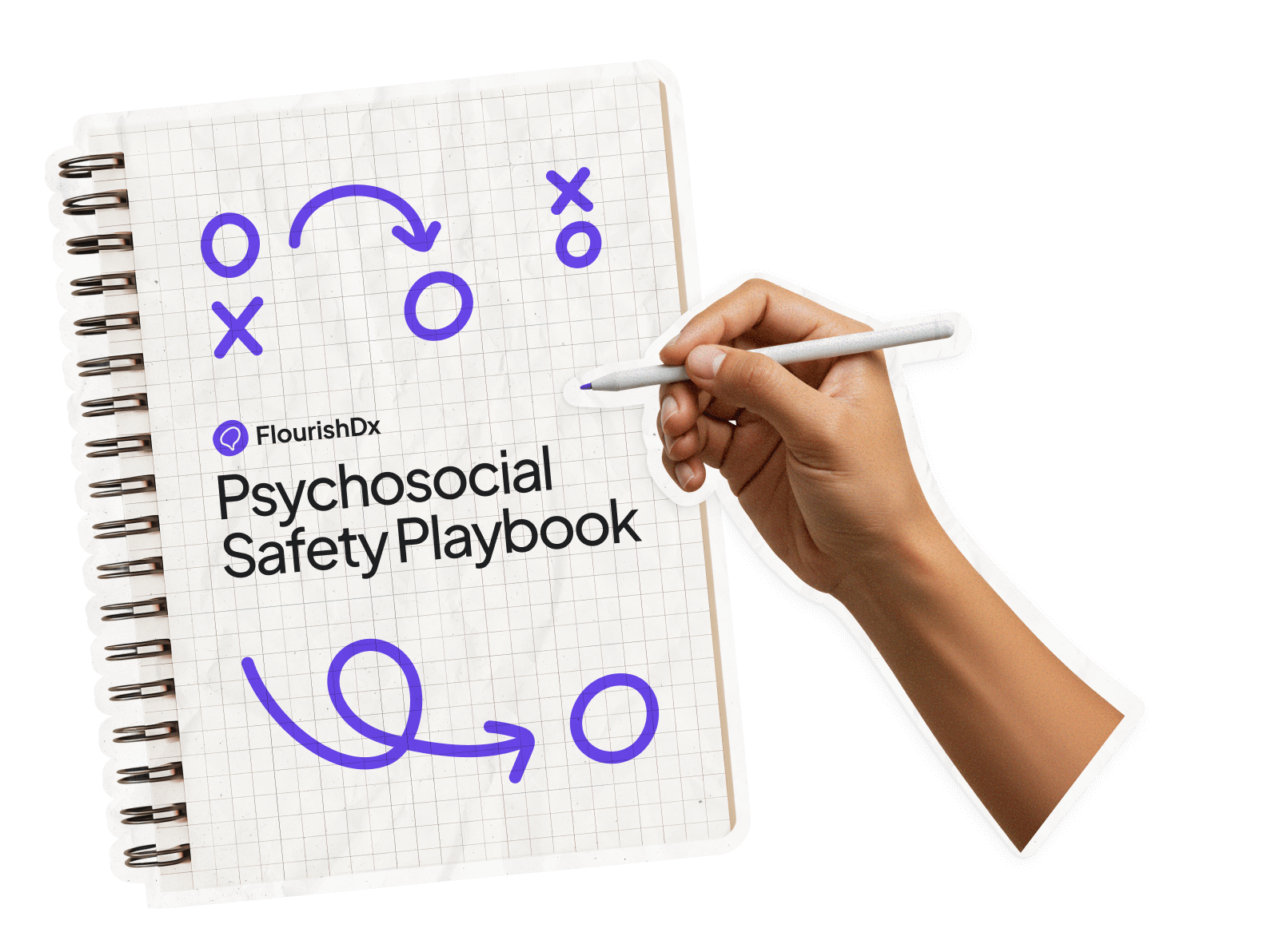 Designed by organisational psychologists, the FlourishDx Playbook gives leaders and teams step-by-step guidance to meet legal obligations, reduce risks, and strengthen workplace wellbeing — helping you go beyond compliance and take confident, meaningful action on psychosocial safety.